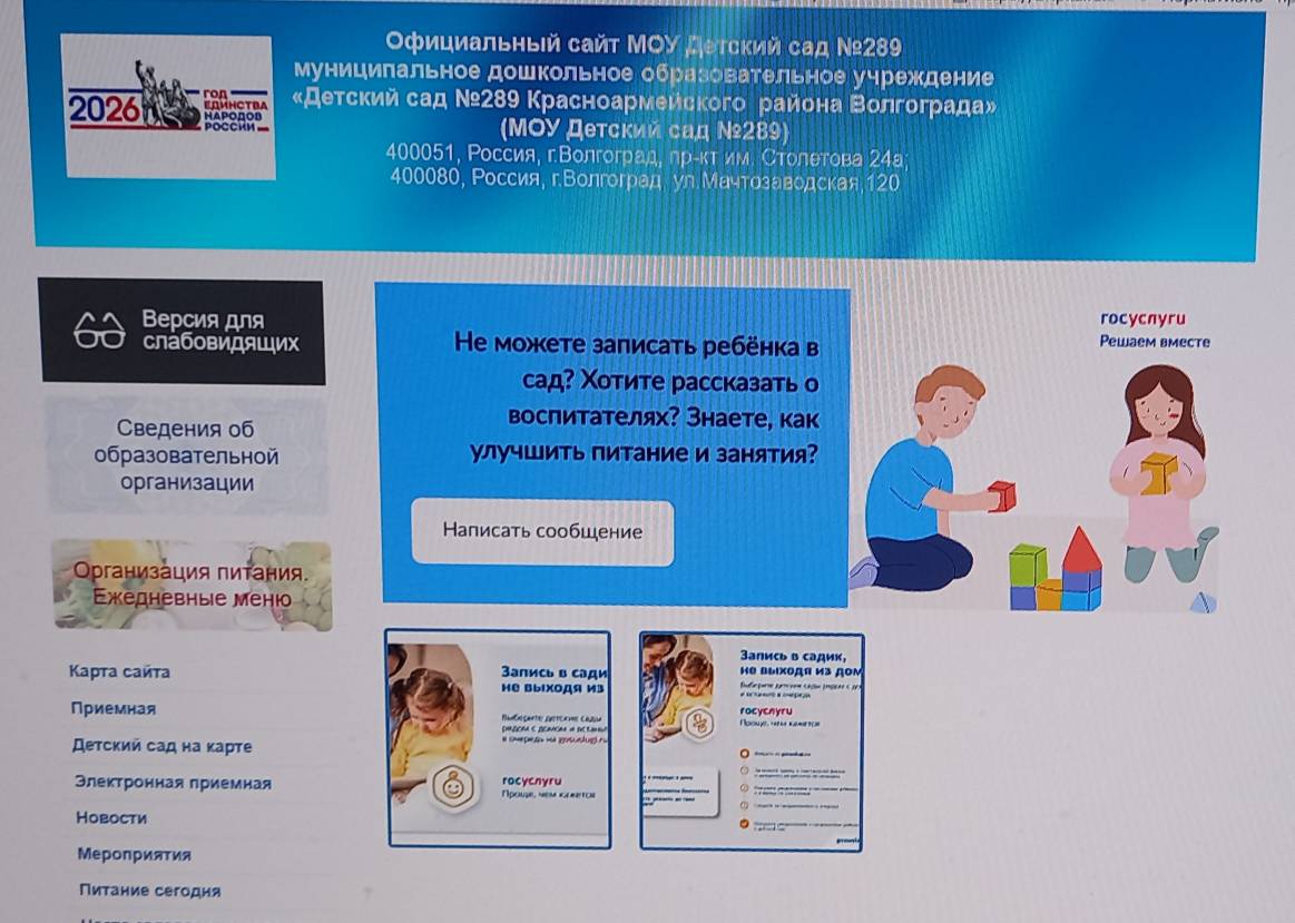 - Сайт детского сада имеет версию для слабовидящих по ГОСТ Р 52872-2012. В версии реализованы различные варианты оформления по цветовым схемам и размерам шрифтов